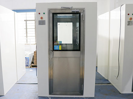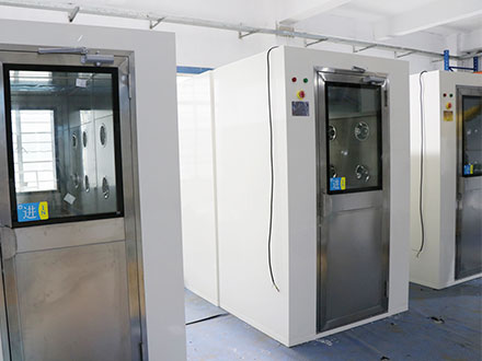 風(fēng)淋室是一種通用性較強的局部凈化設(shè)備,安裝于潔凈室與非潔凈室之間。當(dāng)人與貨物要進(jìn)入潔凈區(qū)時需經(jīng)風(fēng)淋室吹淋,其吹出的潔凈空氣可去除人與貨物所攜帶的塵埃,能有效的阻斷或減少塵源進(jìn)入潔凈區(qū)。風(fēng)淋室/貨淋室的前后兩道門為電子互鎖,又可起到氣閘的作用,阻止未凈化的空氣進(jìn)入潔凈區(qū)域。