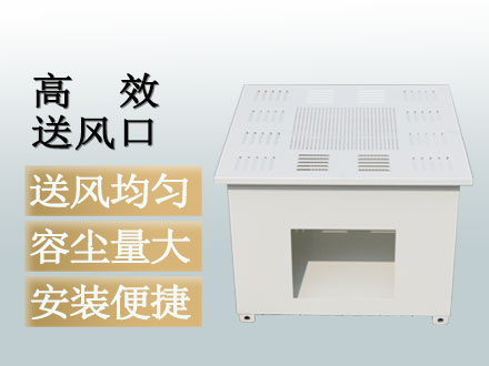 高效送風(fēng)口為千級(jí)、萬級(jí)、十萬級(jí)凈化空調(diào)系統(tǒng)較為理想的終端過濾裝置,可廣泛于醫(yī)藥、衛(wèi)生、電子、化工等行業(yè)的凈化空調(diào)系統(tǒng)。高效送風(fēng)口是用作改造和新建1000-300000級(jí)各級(jí)潔凈室的終端過濾裝置,是滿足凈化要求的關(guān)鍵設(shè)備。高效送風(fēng)口包含靜壓箱,散流板,高效過濾器,與風(fēng)管的接口可為頂接或側(cè)接。